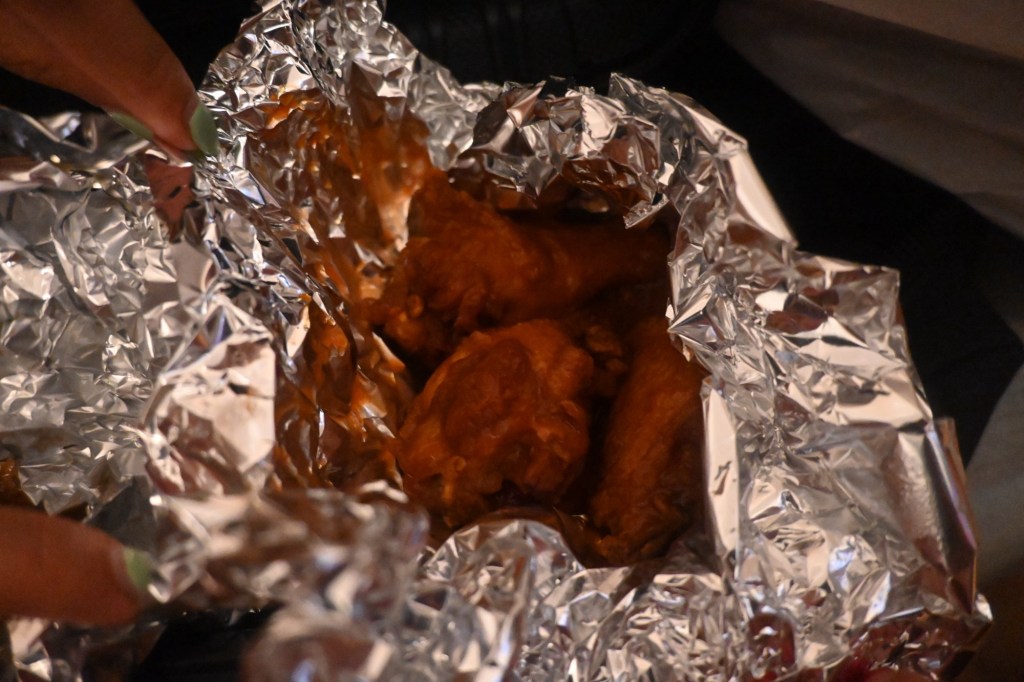 It’s a P saucy chicken and the sauce is like a little bit too much parmesan and the buffalo are just standard buffalo wings.