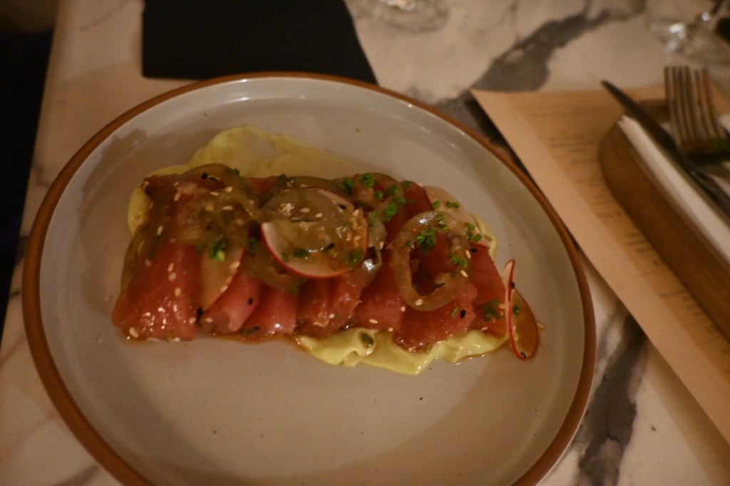 Very good Love the combination of ingredients and the sauce is not over powering good quality tuna wish there was a little more crunch like with a tortilla chip or some chip thing