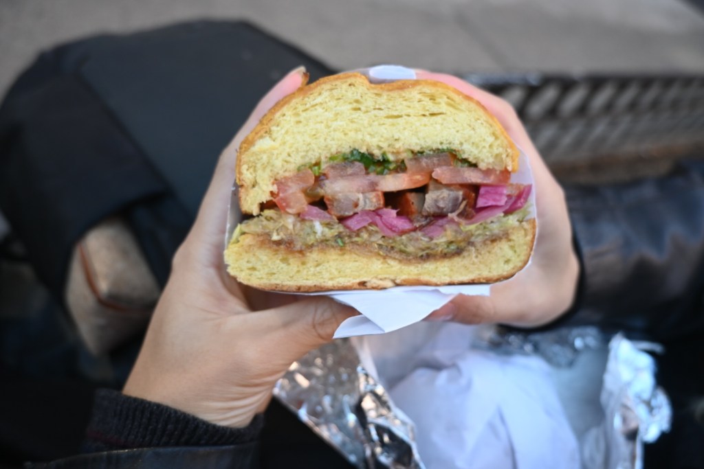 The brioche bun is a tad bit short of deserving of a chefs kiss. It’s slightly sweet with some nice texture. it’s a little off but maybe because i ate this second and it got a bit wet. The chashu pork was really nice. Pretty hard to find a place that doesn’t just obliterate this piece of meat. Maybe i have high standards either way I like this chashu pork in this sandwich.