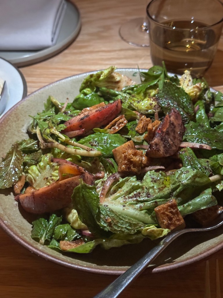 Nectarines were a nice touch to this salad. P acidic. And the croutons were toasted nicely added a nice bit of savoriness to the dish.